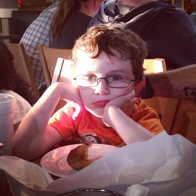Now, restaurants with our little monster are not relaxing. Whether at home or on vacation. And this night has been no exception. See, our monster needs constant meals. After 20 minutes of eating, he is usually hungry again. While he is declaring his hunger, he is also rummaging in cabinets for snacks unseen, kicking kitchen chairs, grunting, screaming, and cowering on the floor in a ball of anger. Once again, tonight, we have failed to feed our monster at the appropriate times, and he is downright angry. We have waited too long to give him what he craves, and now he is beyond consolable, and unable to cope in this situation. He needs to eat NOW!