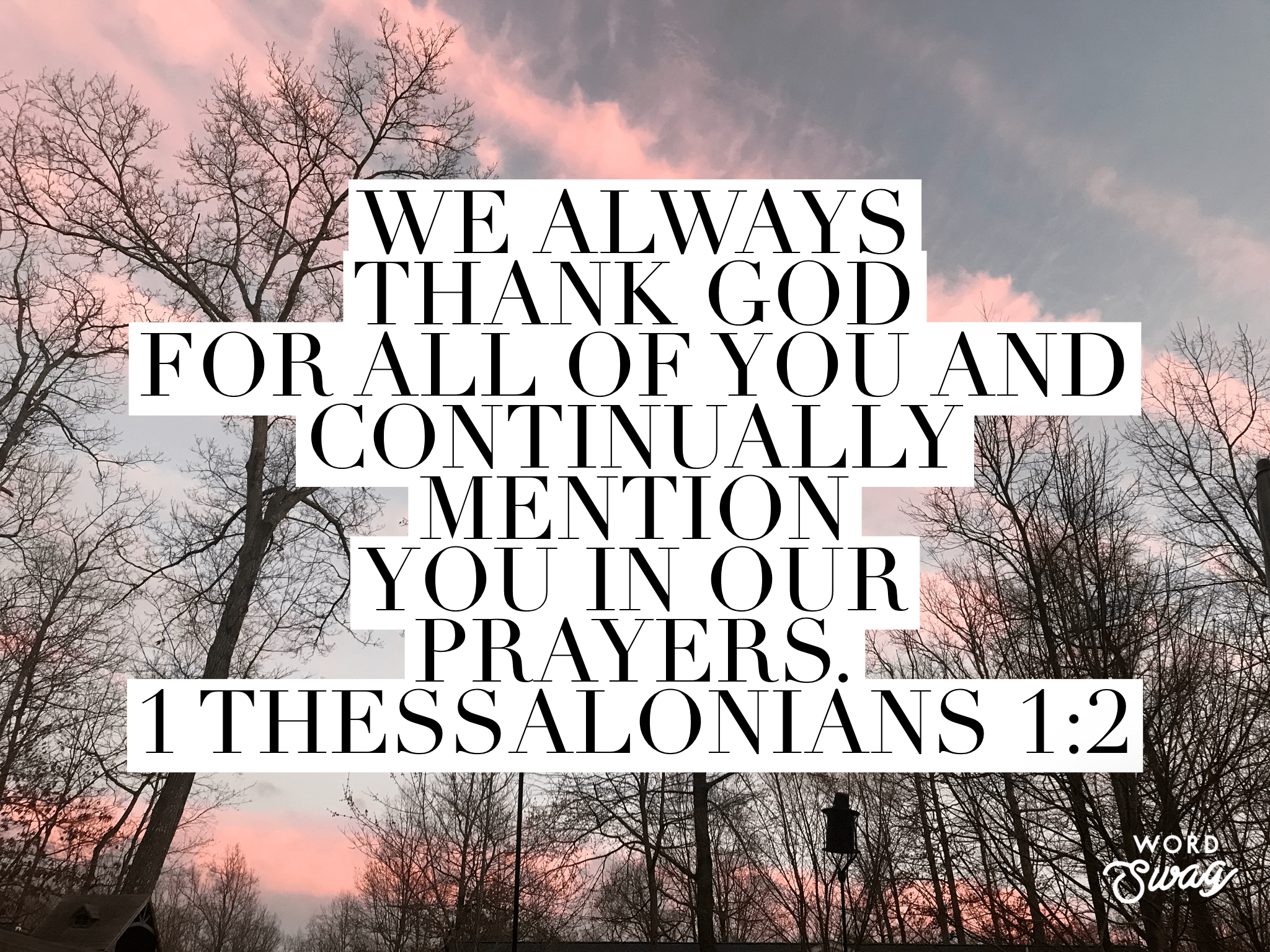 We always thank God for all of you and continually mention you in our prayers. 1 Thessalonians 1:2