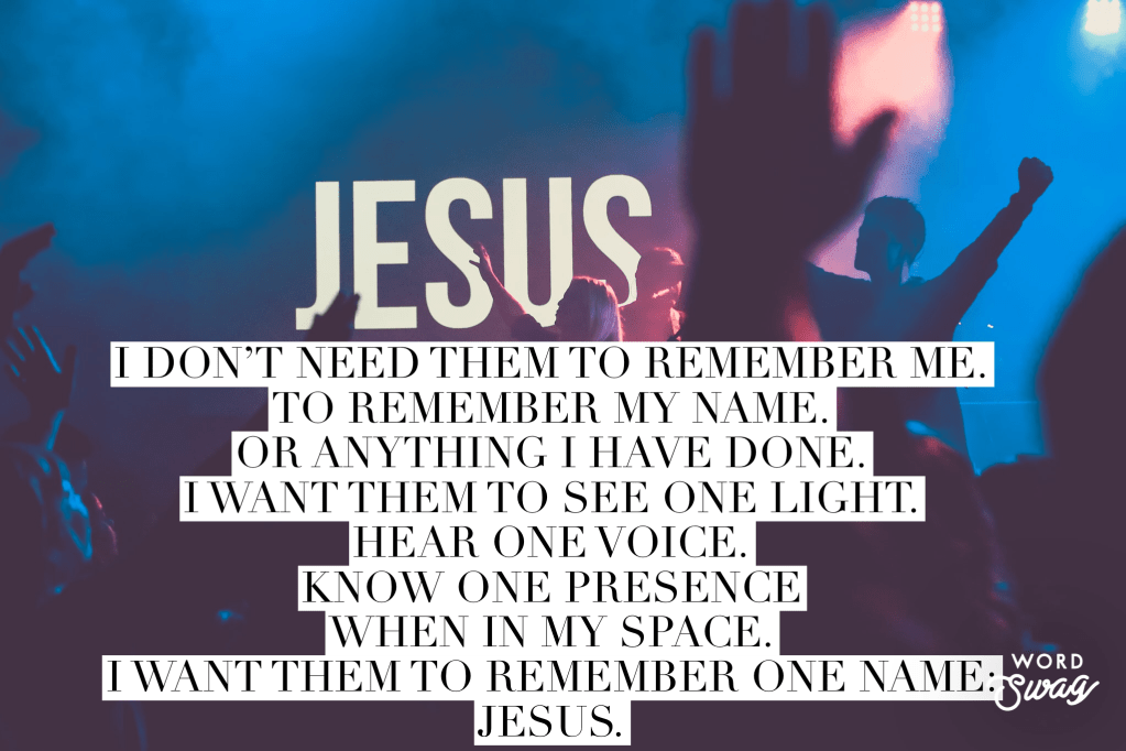 I want them to remember one name: Jesus.