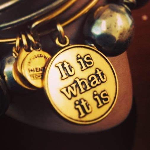 The phrase in the picture above. It’s one of my favorites. Coined by my bestie and I to remind ourselves to not worry over things we can’t control. It has carried us through tough things. Even trivial nuisances. I even have a bracelet to commemorate our adoption of the phrase.
